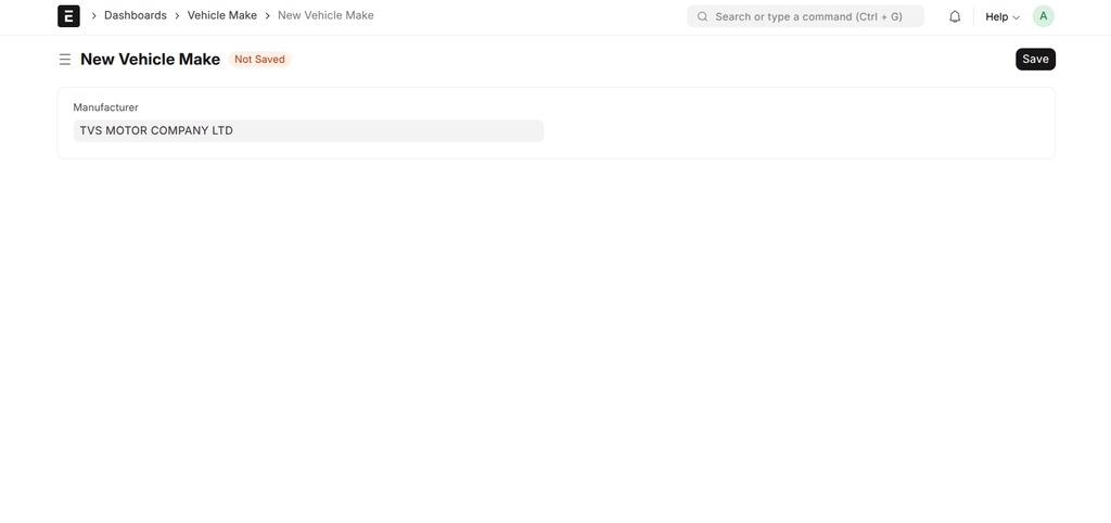 - In the Manufacturer field, enter the name of the brand (e.g., "Tata Motors", "Ashok Leyland").